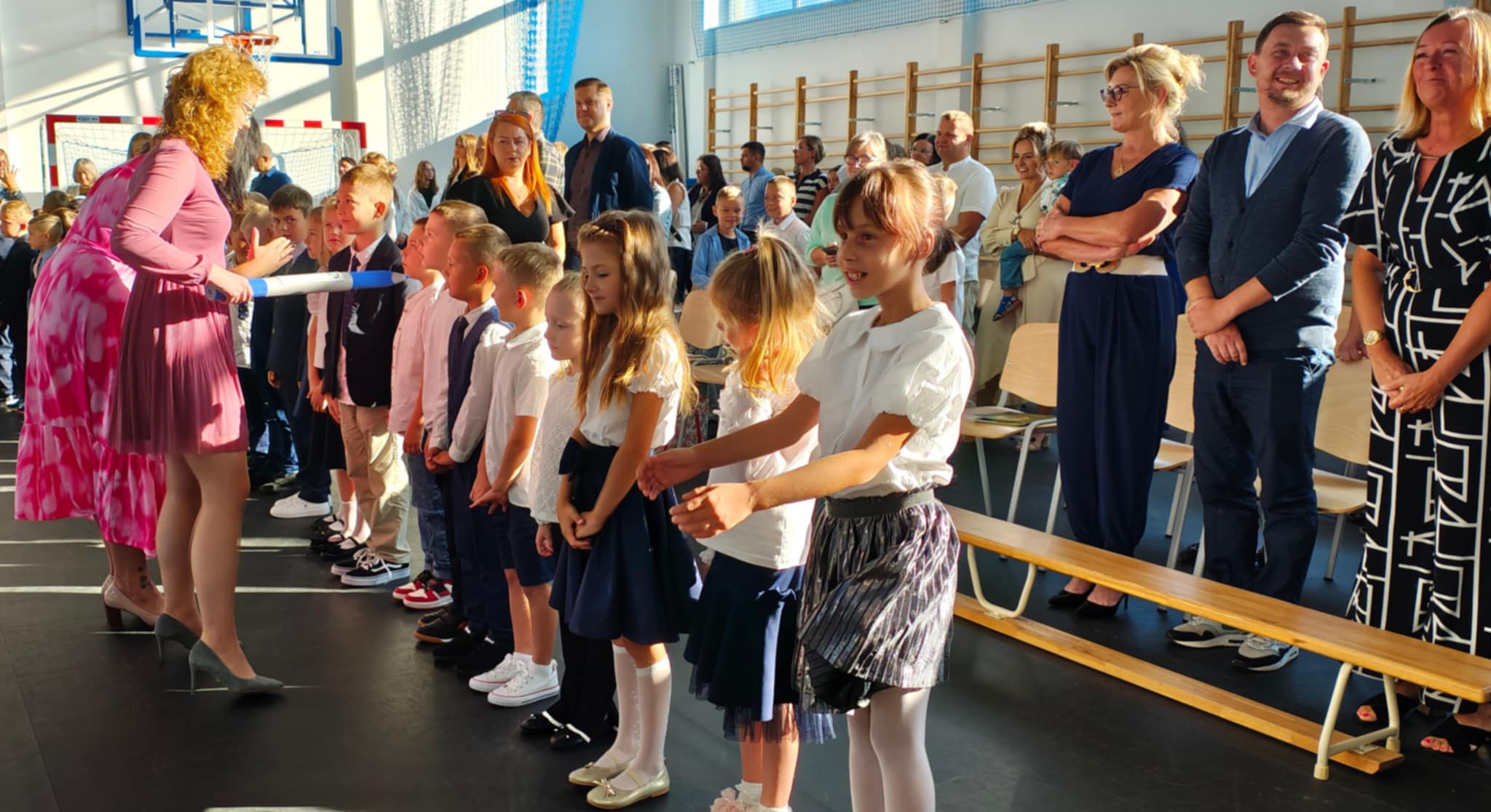 Szczególnym punktem wydarzenia było ślubowanie i pasowanie uczniów klasy pierwszej, którzy w obecności rodziców i zaproszonych gości zostali oficjalnie włączeni do grona uczniów naszej szkoły. To wyjątkowa chwila, która na długo pozostanie w ich pamięci.