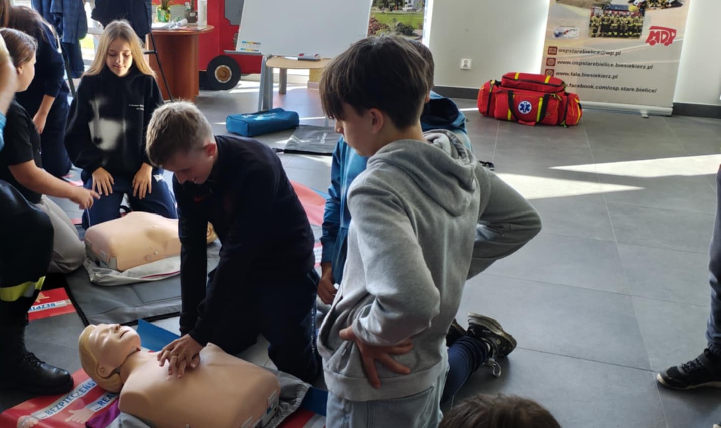 26 września w OSP Stare Bielice odbyły się zajęcia z udzielania pierwszej pomocy, zorganizowane w ramach projektu „W opozycji do mediów – Uczymy się ratować”. Podczas spotkania uczniowie mieli okazję zdobyć praktyczne umiejętności, które mogą uratować życie .