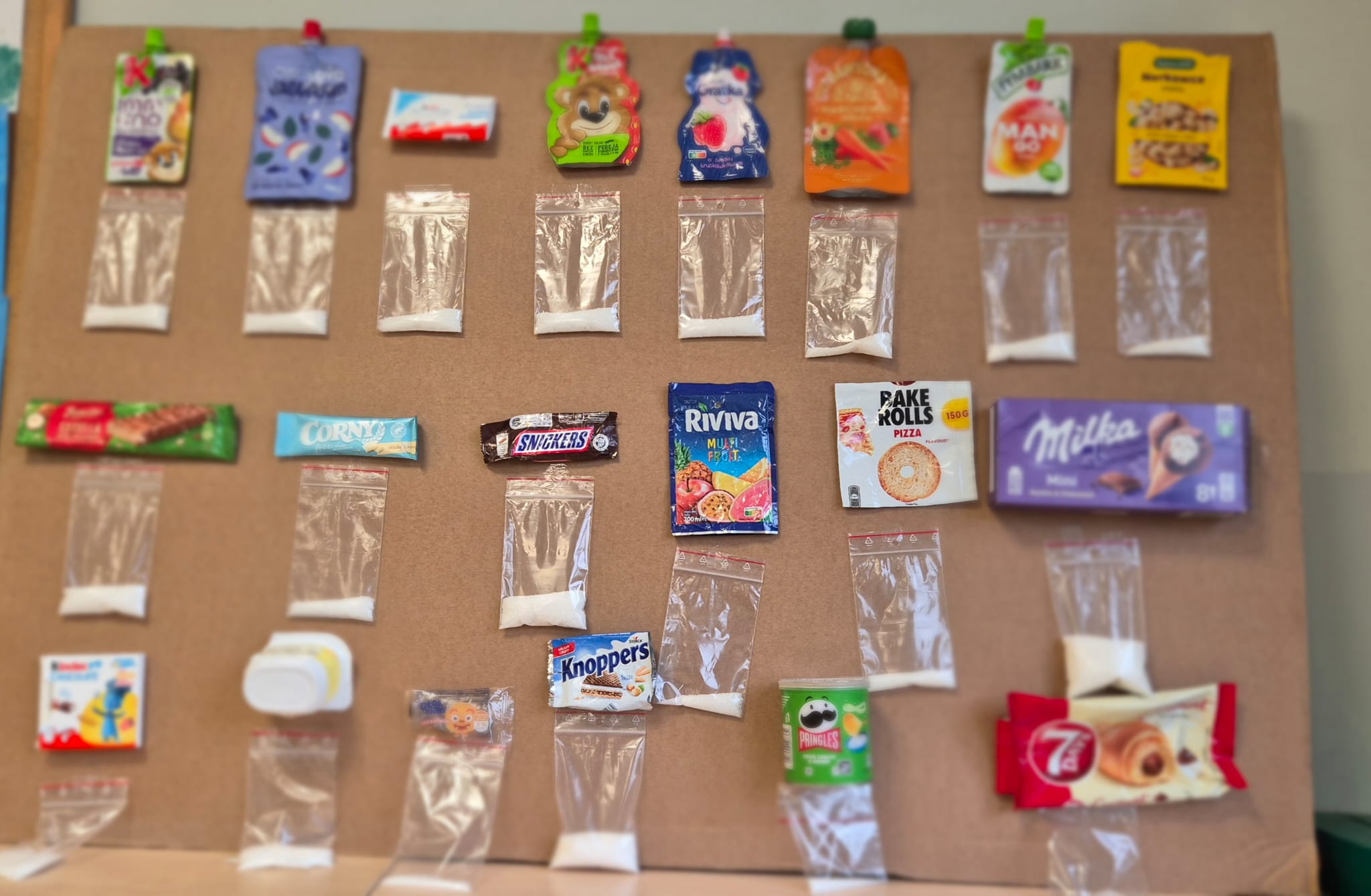 Uczniowie klasy 2A realizują w tym roku szkolnym ogólnopolski projekt edukacyjny pod patronatem MEN- (Nie)zwykła matematyka. W Module IV: Matematyka ze smakiem -zmierzyli się z zadaniem : Wiem, co jem. Drugoklasiści analizowali zawartość cukru w spożywanych przez dzieci przekąskach i napojach. Podczas zajęć uczniowie dowiedzieli się ,że cukier może występować pod różnymi nazwami dlatego warto wiedzieć, w jaki sposób czytać etykiety produktów. Do wykonania obliczeń pomocna okazała się waga kuchenna.#niezwykłamatematyka