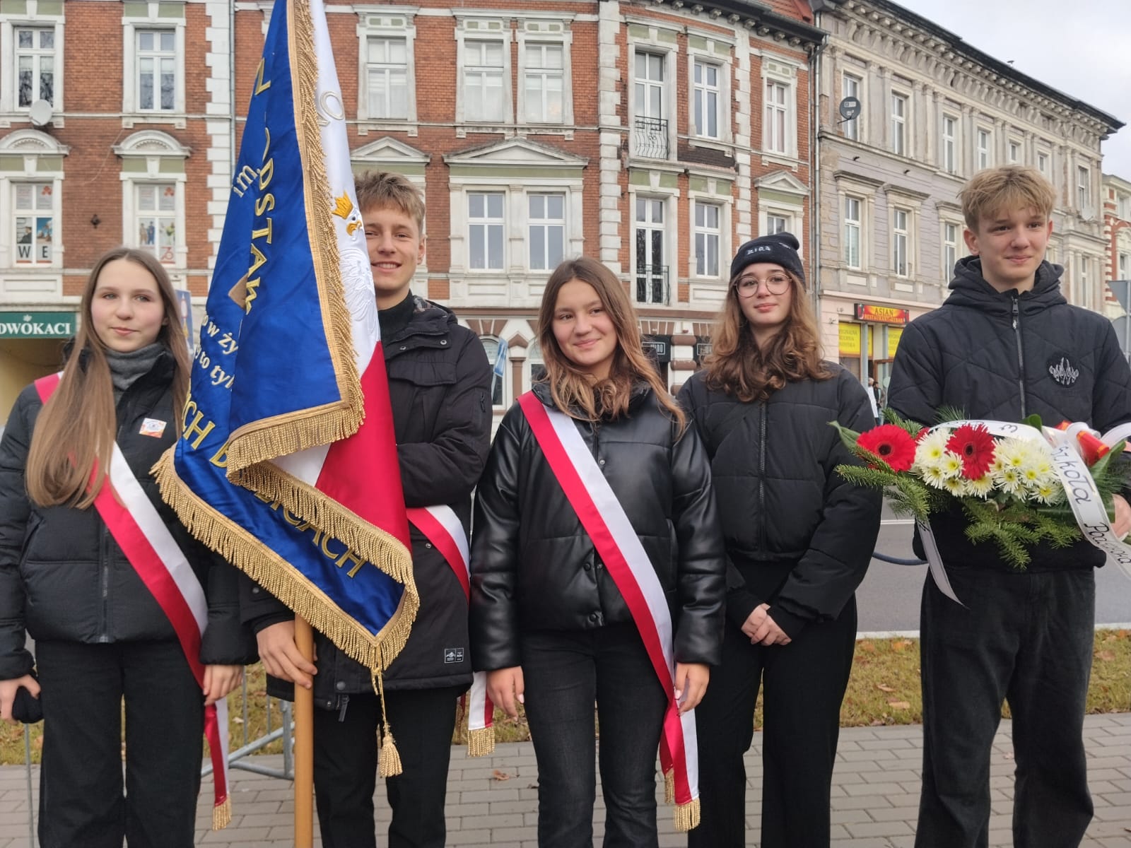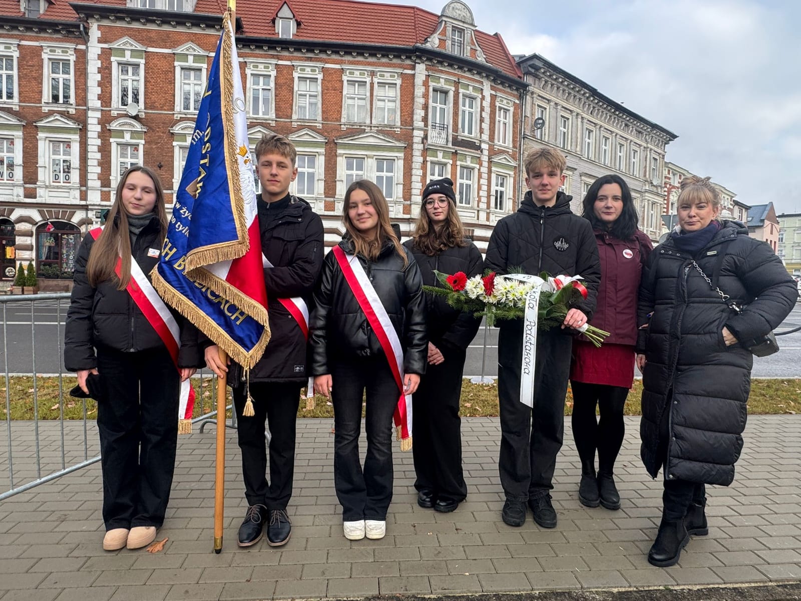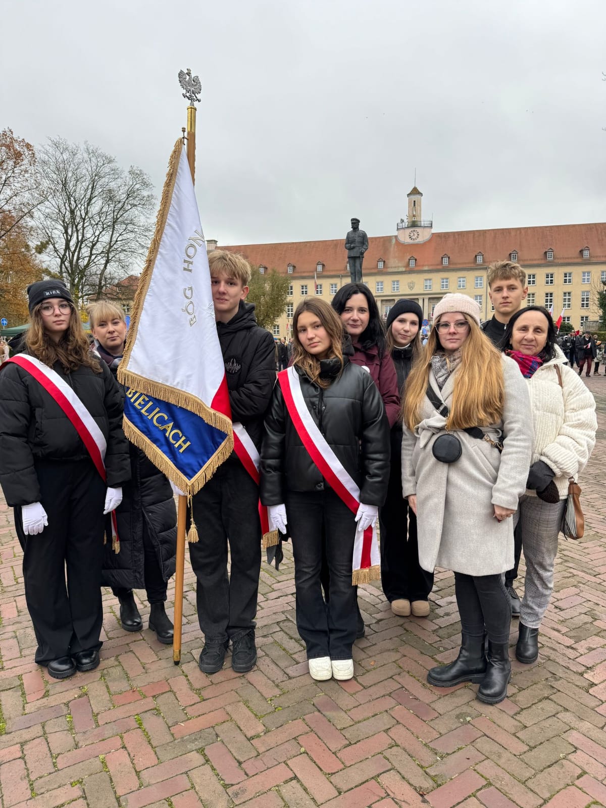 Uroczystości odbyły się pod pomnikiem Marszałka Józefa Piłsudskiego, gdzie nasi uczniowie z dumą reprezentowali całą społeczność szkolną, składając wieniec i oddając hołd tym, którzy walczyli o wolność i Niepodległość Polski.