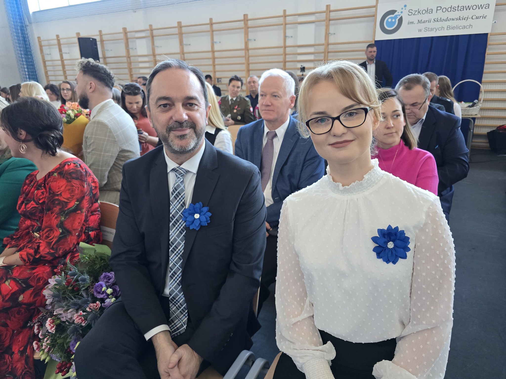Uroczystość była nie tylko okazją do wspólnego świętowania, lecz także momentem wyrażenia wdzięczności wszystkim, którzy przez lata współtworzyli historię i tożsamość naszej szkoły. Szczególnym i wzruszającym punktem programu było uhonorowanie najstarszych absolwentów, którzy z rąk Pani Dyrektor otrzymali kwiaty oraz pamiątkowe cegiełki – symbol pamięci, wdzięczności i szacunku.