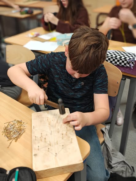 W ramach zajęć powstały wyjątkowe, pełne kreatywności matematyczne choinki wykonane techniką haftu matematycznego lub string art. Choć igła i nitka potrafiły sprawić nieco trudności, efekty końcowe były naprawdę imponujące — prace uczniów zachwycają starannością i pomysłowością.