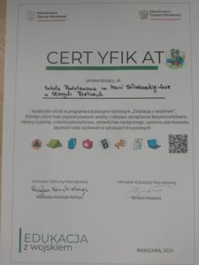 Z dumą informujemy, że nasza szkoła wzięła udział w programie edukacyjno-obronnym „Edukacja z wojskiem”. Więcej…Program „Edukacja z wojskiem”